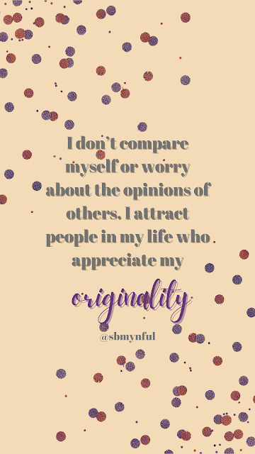 I don’t compare myself or worry about the opinions of others. I attract people in my life who appreciate my originality.